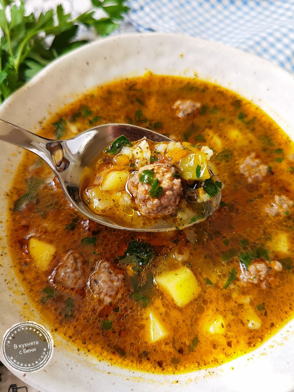 Здравейте, приятели! 🤗У дома много обичаме супа топчета и днес приготвих вариант с различни зеленчуци и я оставих бистра, без застройка. 👩🍳🍲🥕🧅🌿Много ароматна и вкусна се получи и купичките бързо останаха празни.😋🥣☺️🥄Пожелавам ви приятна вечер и добро настроение!🥰🌺Нужни са:🥣1 глава лук (средно голяма)🥣1 морков (70 г)🥣½ зелена чушка🥣300 г картофи🥣1 малък розов домат (150 г)🥣½… Продължете да четете Градинарска супа топчета