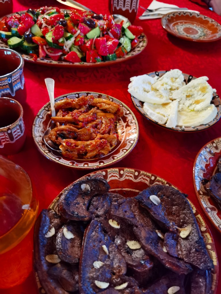 Не разполагахме с много време и денят завърши на чудна трапеза, с разкошно приготвено агнешко, превъзходен домашен хляб, салати и вкусни храни с продукти от тяхната градина. 🥰🍲🍞🍷Случайно нямаше много други туристи и успяхме да се насладим на цялото внимание и гостоприемство на домакините. Нощното небе бе изпълнено с безброй звезди и дори се виждаше млечния път. Направих снимка, макар да знам, че не вижда добре и няма да може да предаде истинската красота. 🌟