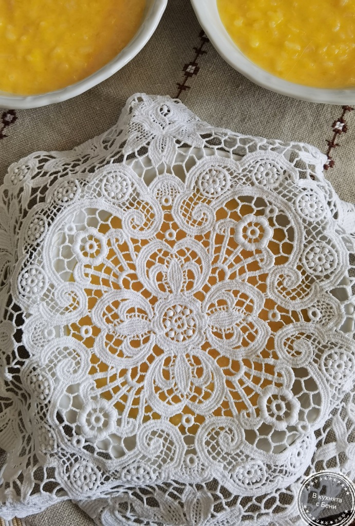 📌Украсата от канела направих, като използвах дантелен текстил, който поставих върху купичката и поръсих с канелата.