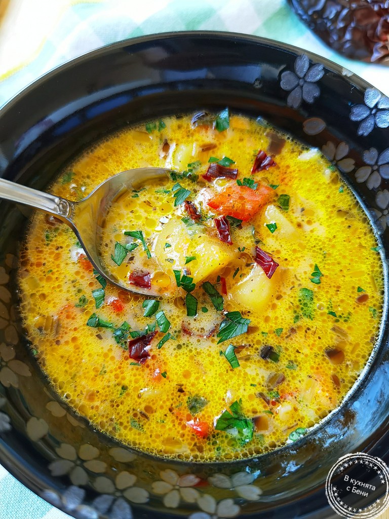 Днес менюто у дома е скромно, а именно картофена супа с праз и още нещо. 😋🥣🥔🥕🥄Много обичам супата като храна и се старая да я приготвям често и в различни варианти.☺️👩🍳🥣 Ще се радвам да споделите с мен коя е вашата любима супа. ☺️