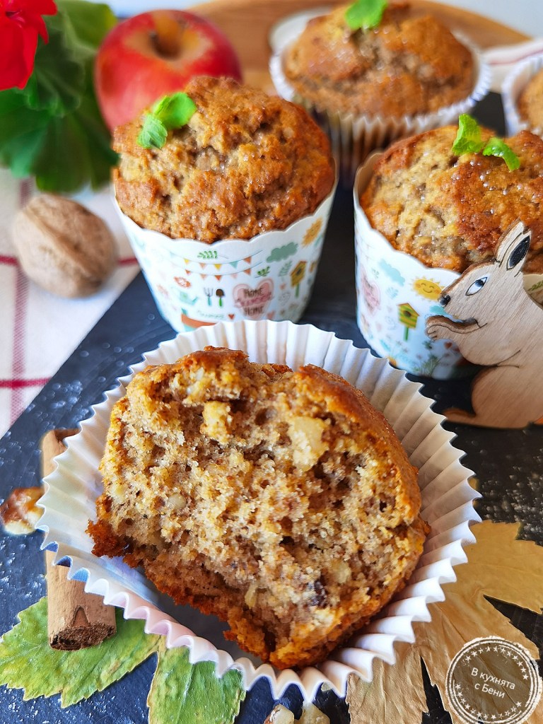 Днес изпекох тези ароматни и много меки кексчета с ябълка, за направата на които използвах равни количества пълнозърнесто брашно-ръжено и пшенично. Много вкусни се получават и ще се радвам, ако ги направите и вие. 😋🍎🧁👩🍳😍