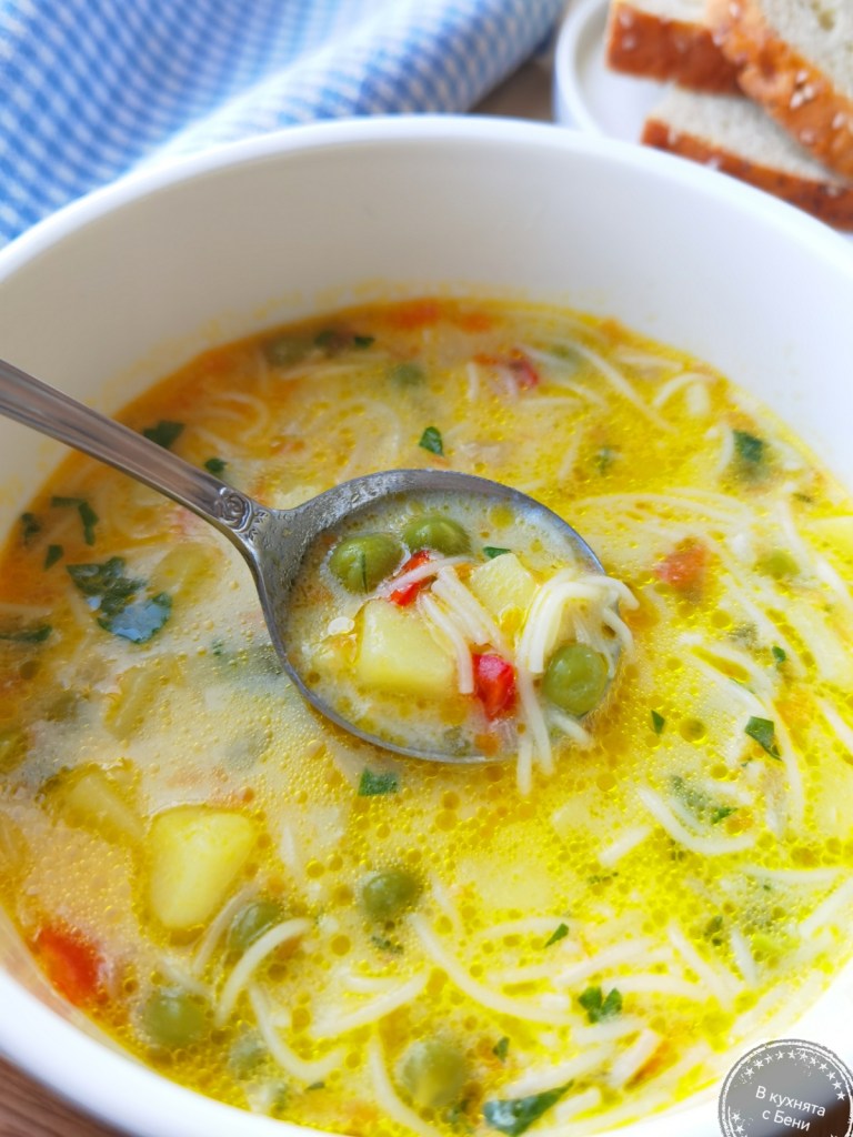 Съвсем обикновена, но много вкусна супа приготвих днес.😋🥣🥄🫛 🥕От няколко дни я виждах в мислите си и днес реализирах тази идея. Направата й отнема малко време, а вкусът й е просто чудесен.👩🍳😍👌🥄