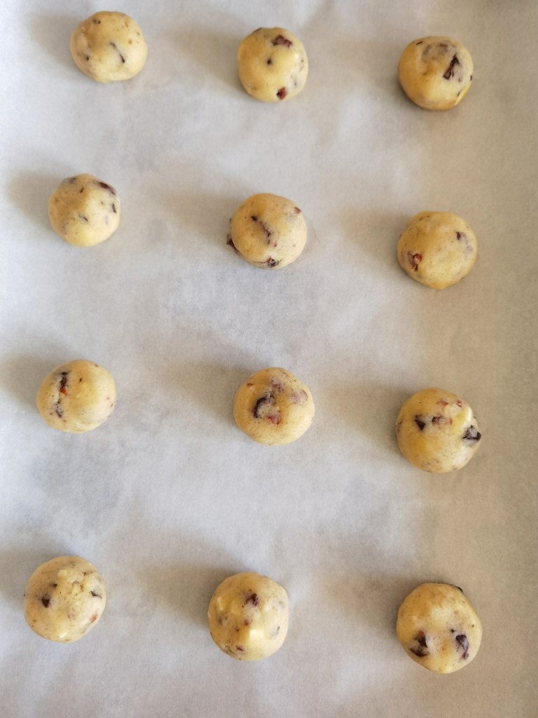Взех с лъжичка от сместа и с длани оформих малки топчета с диаметър 3 см. Поставих ги в подходяща чиния и когато всички бяха готови, ги прибрах в хладилната камера за 30 минути.