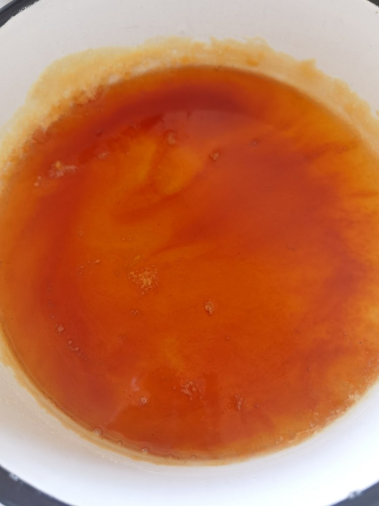 За карамела: 100 г захар ( ½ ч.ч.) и 3 с.л. вода