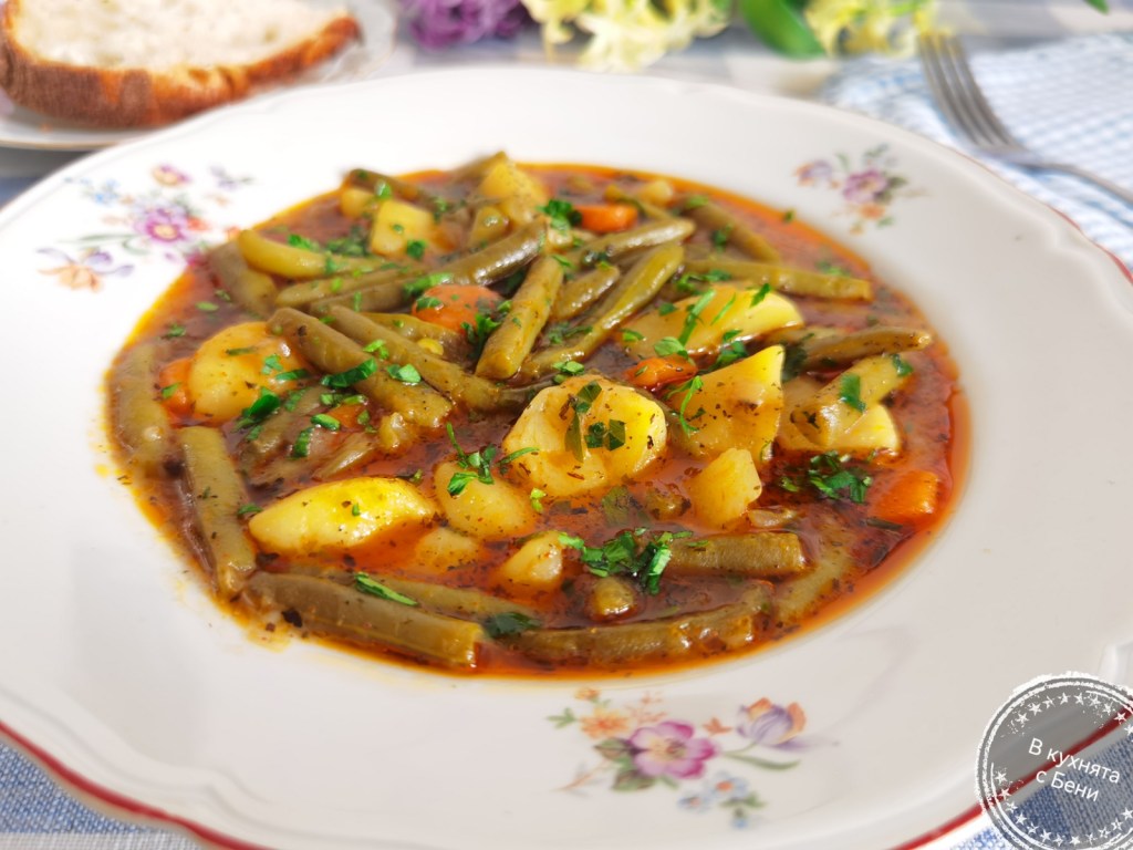 За обяд днес приготвих тази съвсем обикновена картофена яхния със зелен фасул. Винаги се получа много вкусна и често ме спасява в моментите, когато нямам време, а искам да поднеса топла храна. 😋🫛🥔🥘🍴Ако не добавяте масло, гозбата е подходяща и за постещите.☺️👌