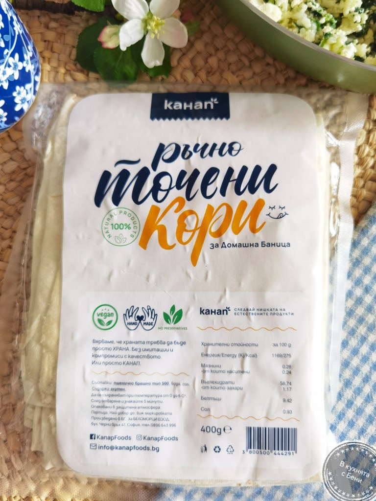 🌿1 пак ръчно точени кори за баница „Канап“ (400 г) https://kanapfoods.bg/producti/hrani/%d1%80%d1%8a%d1%87%d0%bd%d0%be-%d1%82%d0%be%d1%87%d0%b5%d0%bd%d0%b0-%d0%ba%d0%be%d1%80%d0%b8-%d1%81-%d0%bf%d1%88%d0%b5%d0%bd%d0%b8%d1%87%d0%bd%d0%be-%d0%b1%d1%80%d0%b0%d1%88%d0%bd%d0%be/?utm_source=Influencer&utm_medium=Social&utm_campaign=Albena&utm_content=January&utm_term=Recipe