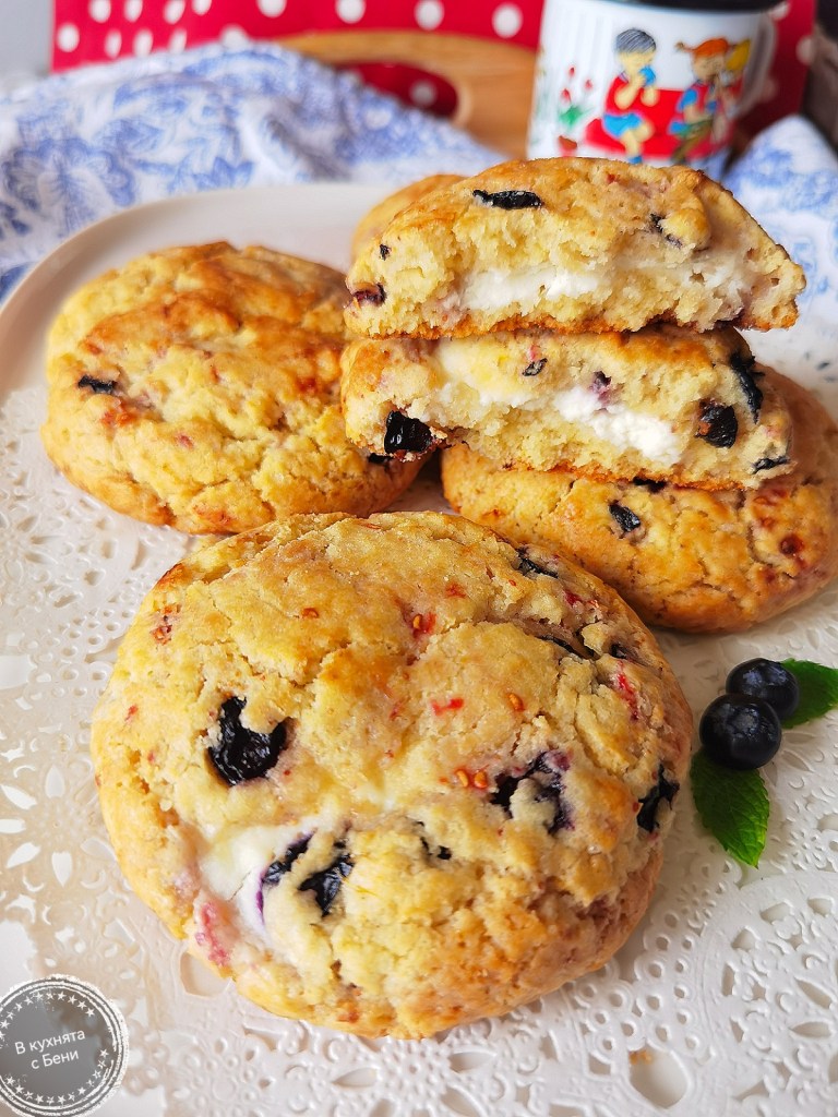 Днес приготвих тези изключително вкусни и меки бисквити с пълнеж от крема сирене и допълнение от няколко боровинки и малини, които имах налични. ☺️🍪😍🫐 Повечето занесох на колегите ми и те очакват рецептата с нетърпение. 😋🤩Препоръчвам ги горещо и съм сигурна, че ако ги опитате и на вас ще станат любими. ☺️🍪😋