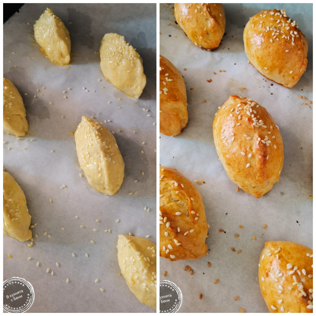 Сложих ги да се пекат в напълно загрята на 180 градуса фурна за 20 минути или до видима готовност и апетитен загар.