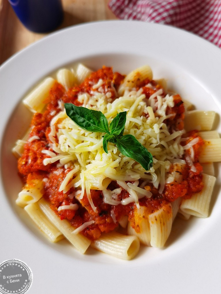 Днес нямах време и за обяд приготвих това семпло, но много вкусно ястие с макарони. ☺️🍝👩🍳В сезона на хубавите български домати за соса използвах пресни, но може да се направи и с консервирани. ☺️🍅Не е нужно дълго време за готвене, а в резултат се получава вкусна храна.😍👌🍴🌿