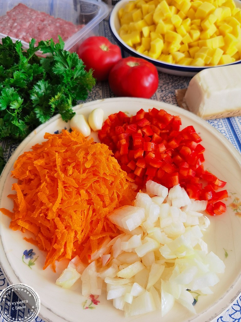 🥔1 малка червена чушка (капия; 70 г; нарязана на малки кубчета)