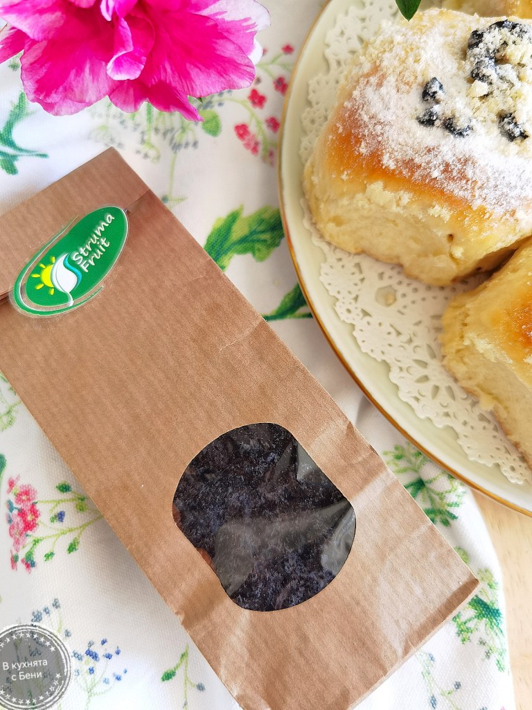 Използвам сушени боровинки, които придават чудесен вкус и сладост на питките. Те са много подходящи и за хапване на път, в училище и навсякъде, давайки ползи за здравето ни. Пресните плодове ще отделят сок, който може да овлажни тестото и затова използвам сушени.