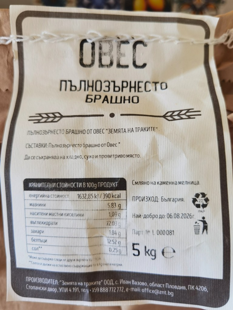 🍞250 г пълнозърнесто овесено брашно (2 и ½ ч.ч.) българско, смляно на каменна мелница https://shop.znt.bg/bg-product-details-402.html?utm_source=menub&utm_medium=menub&utm_campaign=menub Последни дни, до края на септември всяка поръчка без значение от стойността й е с безплатна доставка до BOX NOW 🥰