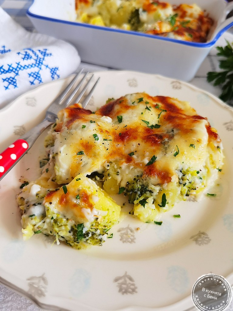 Купих свежи броколи и имах хубави картофи, които съчетах в това ястие на фурна. 😋🥦🥘👩🍳Може да се направи и в тавичка, а и в индивидуални съдове. Вкусно се получава и приготвянето му не отнема много време и усилия.☺️🥦👌