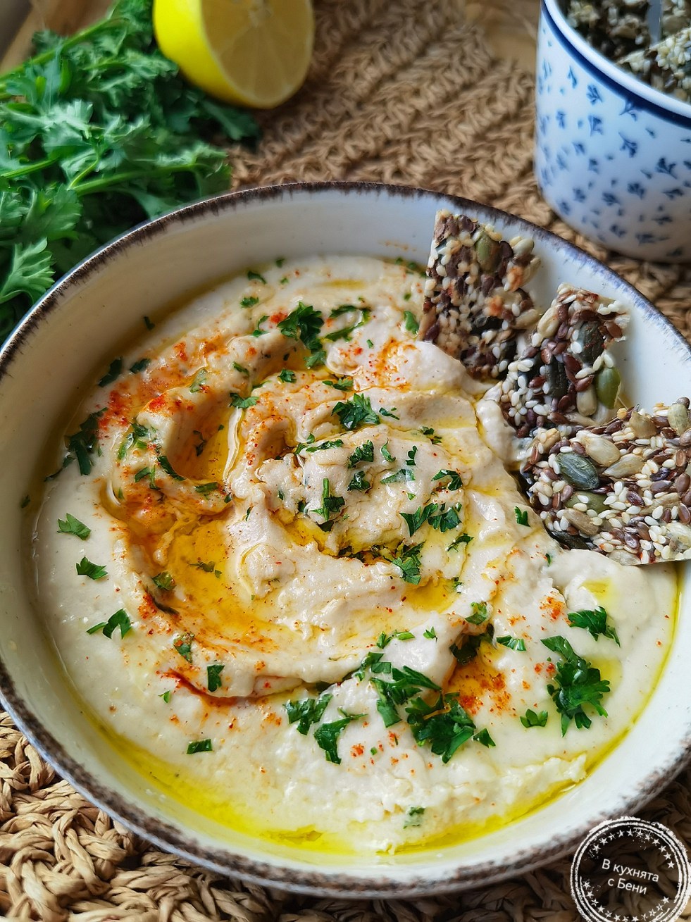 Здравейте, приятели! 🤗Много обичам хумус и днес го приготвих от бял боб. Получи се по-вкусен от този с нахут и вече все така ще го правя. Изпекох и крекери от семена, които се правят много лесно и ги препоръчвам горещо. ☺️🥨👌Пожелавам ви спокойна вечер! 🥰🍁Нужни са:✅400 г сварен боб (използвах готов от буркан)✅50 г сусамов… Продължете да четете Хумус от боб и крекери със семена