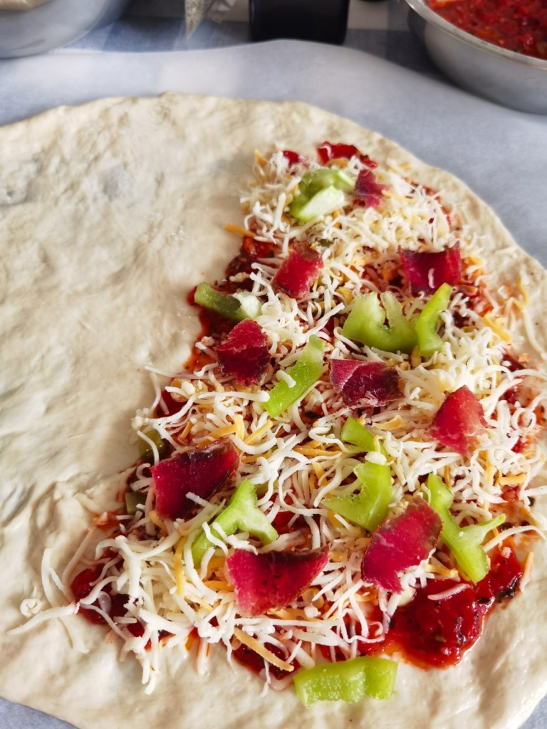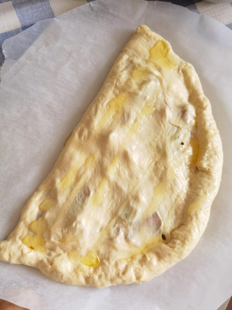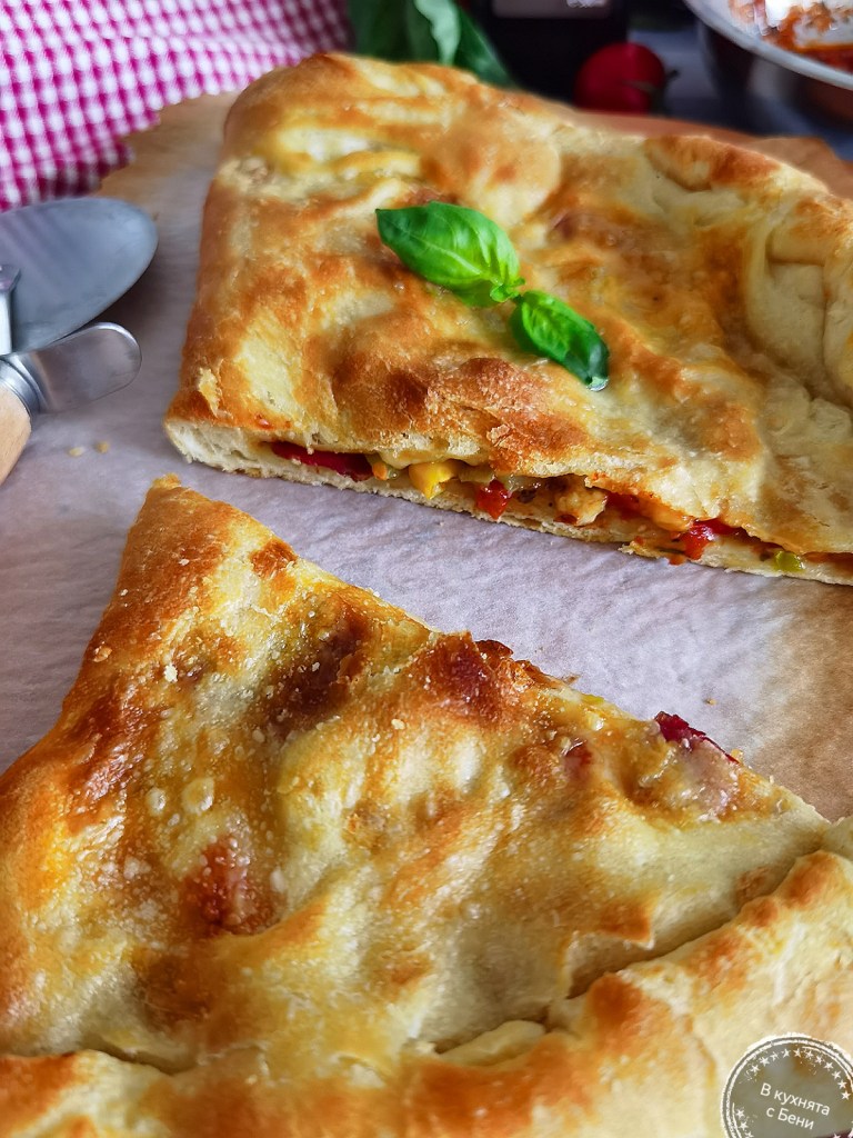 В снежната неделя у дома ухае на пица, която този път е затворена- тип Калцоне. ☺️🍕Пълнежът всеки може да избере по свой вкус, а тестото е лесно за работа и след изпичане пицата е мекичка и много вкусна.👩🍳🍕☺️