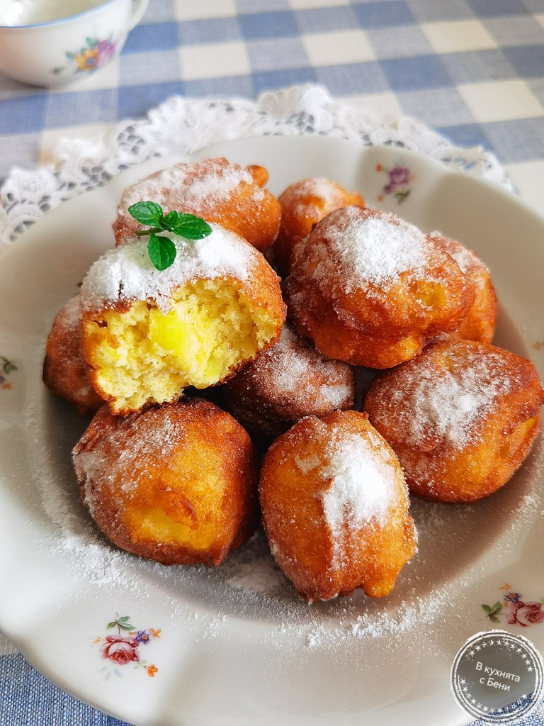 Готовите бухтички поръсих с пудра захар и сервирах. Получиха се 17 броя.
