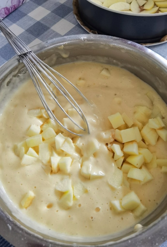 📌Спрямо големината на ябълките и дебелината на резените е възможно две от тях да са достатъчни за покриване на дъното и така другите три да се сложат в сместа.