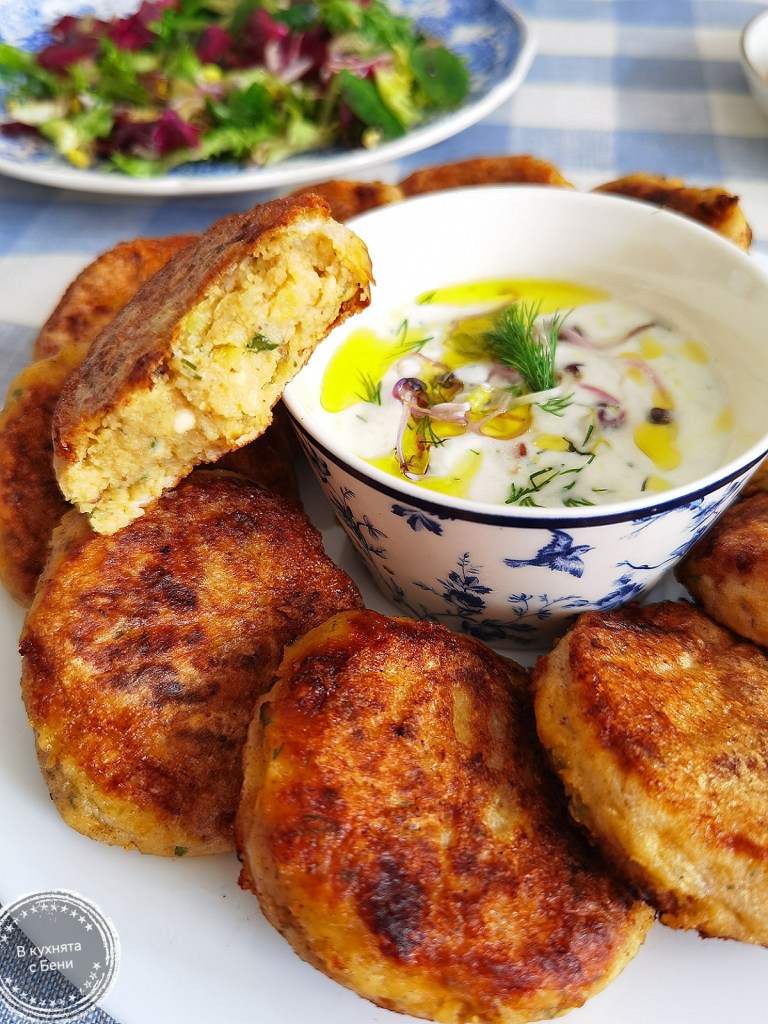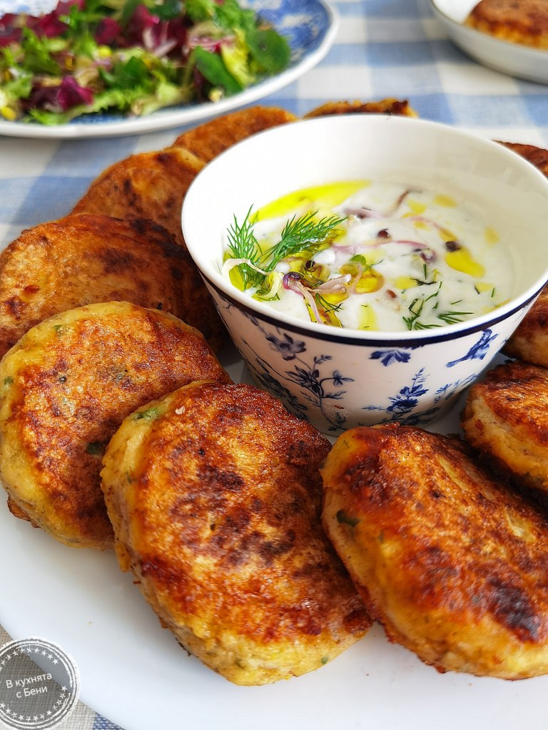 Сервирах ги леко охладени със свежа салата и с млечен сос, приготвен от гъсто кисело мляко, пресована скилидка чесън, ситно нарязан копър, сол на вкус, малко зехтин и малко кълнове от репички.