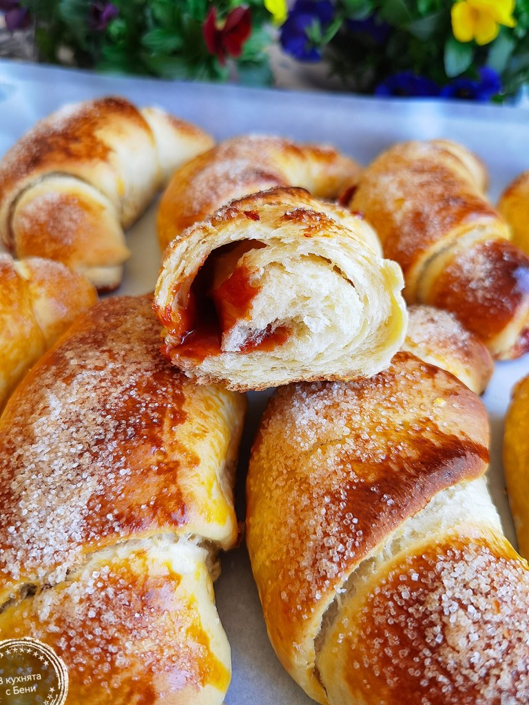 📌Възможно е при втасване от някои кифли да изтече малко мармалад, но го отстранете с лъжичка и изпечете.