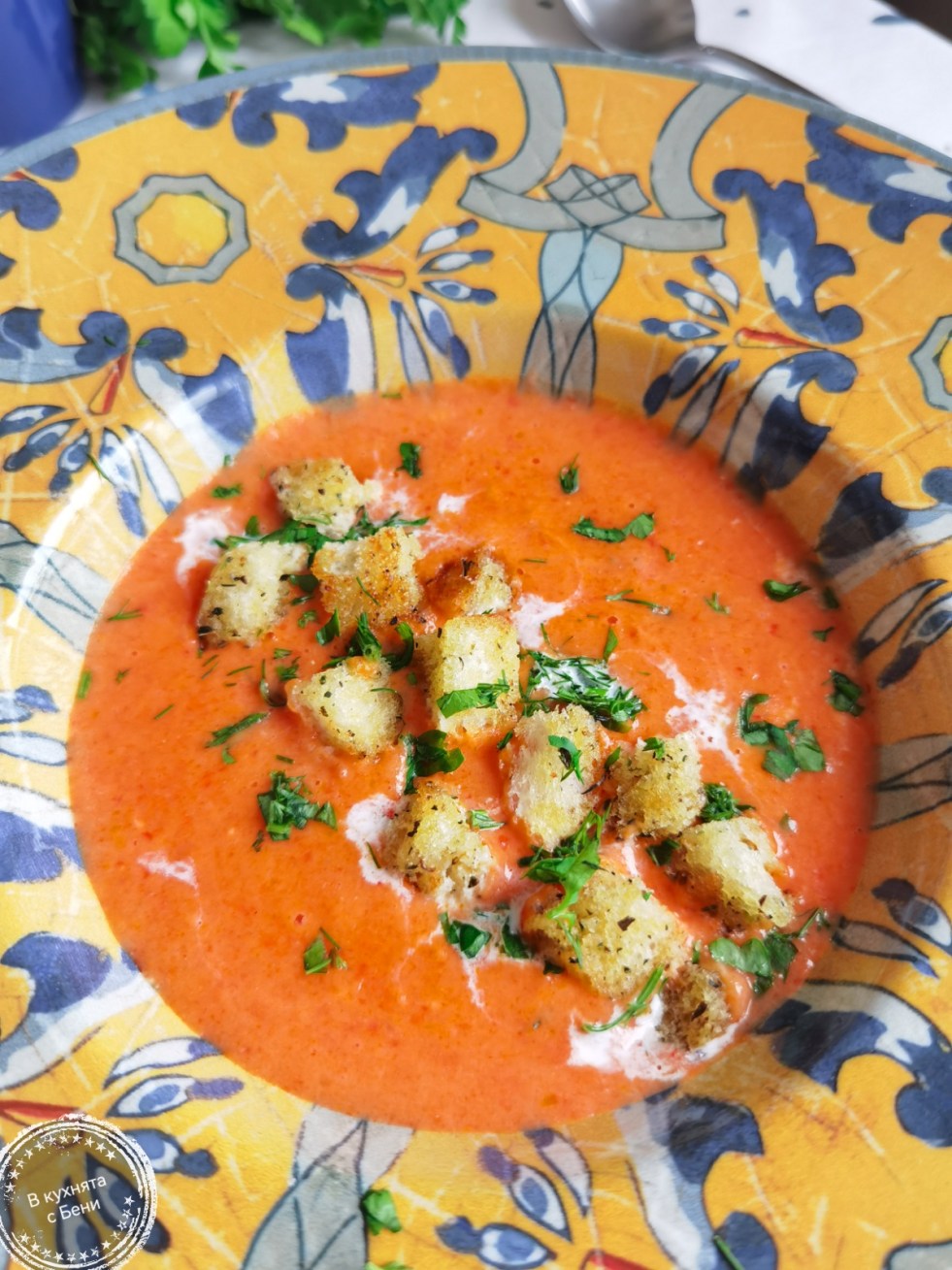 Здравейте, приятели! 🤗В снежния зимен ден ви представям крем супата с печени чушки и крема сирене, която приготвих за обяд. Направата й отнема малко време, а вкусът е чудесен. ☺️🌶️🥣👩🍳👌Пожелавам ви спокоен следобед!🥰☃️За 4 порции са нужни:🥣1 с.л. телешка лой (или друга мазнина по избор) https://divataferma.com/product/bio-teleshka-loy/🥣300 г печени чушки (4 средно големи; използвах замразени)🥣1 средно… Продължете да четете Крем супа с печени чушки и крема сирене