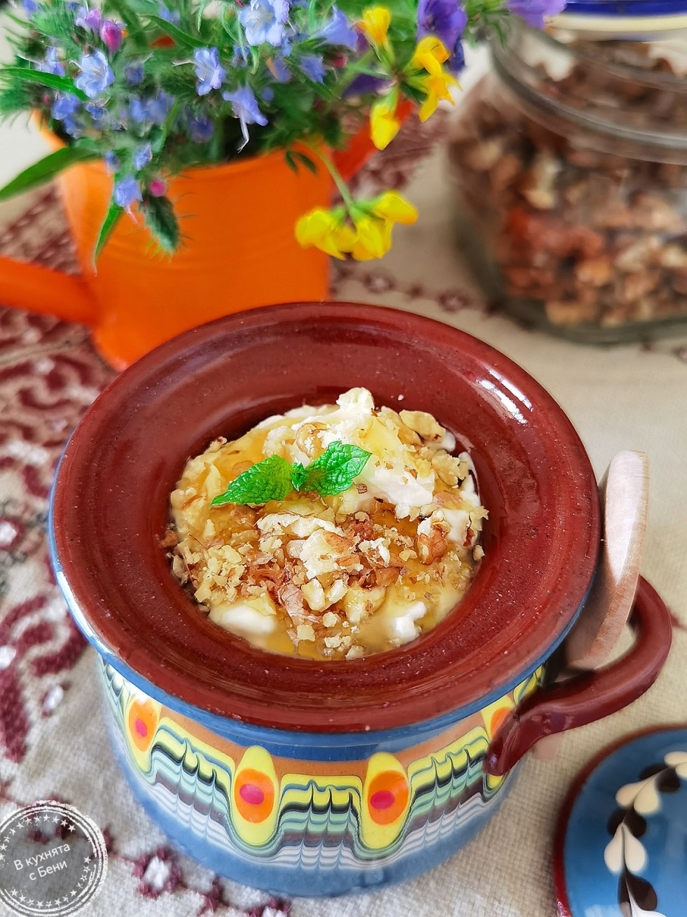 Здравейте, приятели! 🤗Често най-обикновените неща са най-хубави и това важи особено много за десерта, който приготвих днес. Направих го със семпли продукти, а вкусът му е нежен и разкошен и определено е подходящ за любителите на здравословните рецепти. 😋🍯🍨🥄😍Цедено мляко с мед и орехи има в тази малък керамичен буркан и определено не впечатлява с… Продължете да четете Цедено мляко с мед и орехи